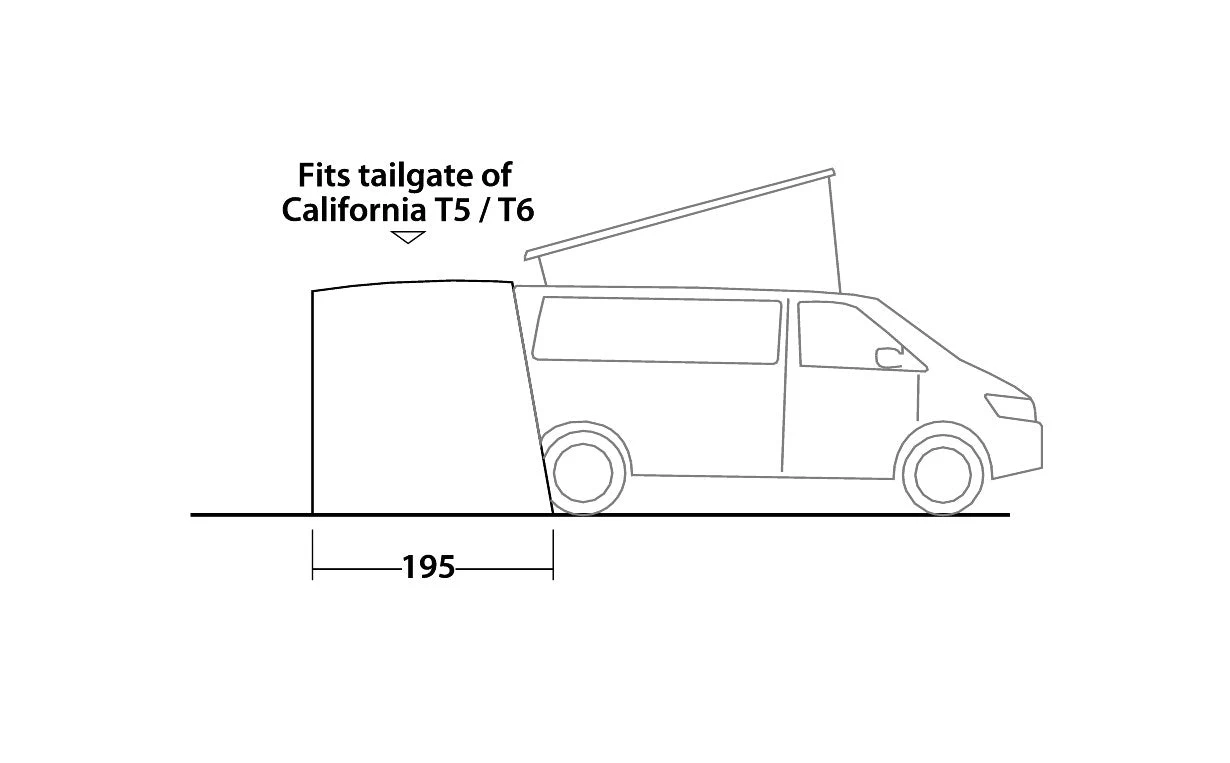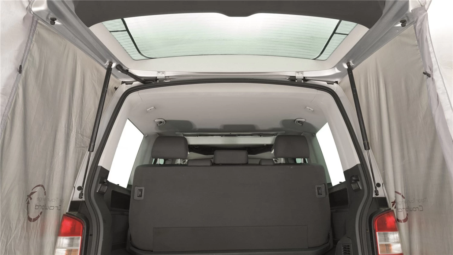 A versatile tailgate design that adds flexible space to campervans, the Easy Camp Crowford design is ideal for VW California T5/6 models. Securely pitched on the tailgate with twin guylines and a toggle-up door with ample walk-in height easily accessed or raised as a canopy for extra shelter from the sun or rain.