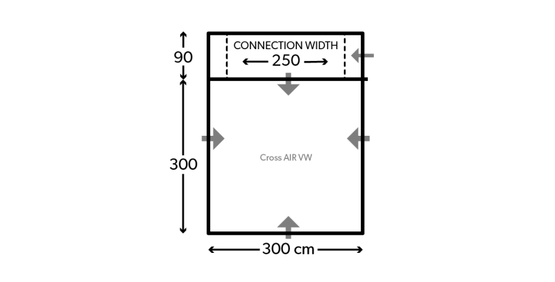 The Kampa Cross Air TC is a 3m-wide drive-away awning constructed with Kampa’s unique Polycotton fabric and Multi-Point Inflation System, guaranteeing quick pitching and superior weather protection. With features such as a brow canopy, connection tunnel and toggled-up privacy curtains, the Cross Air TC offers a comfortable, secure and adjustable living space tailored to your vehicle.