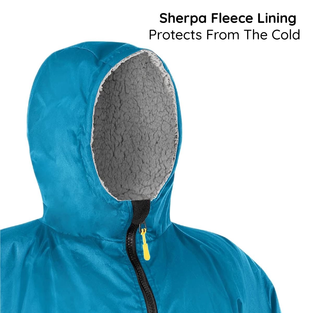- Waterproof and windproof dry robe made with polyester outer and Sherpa fleece fabric inner lining to keep you dry and warm in wet and windy weather