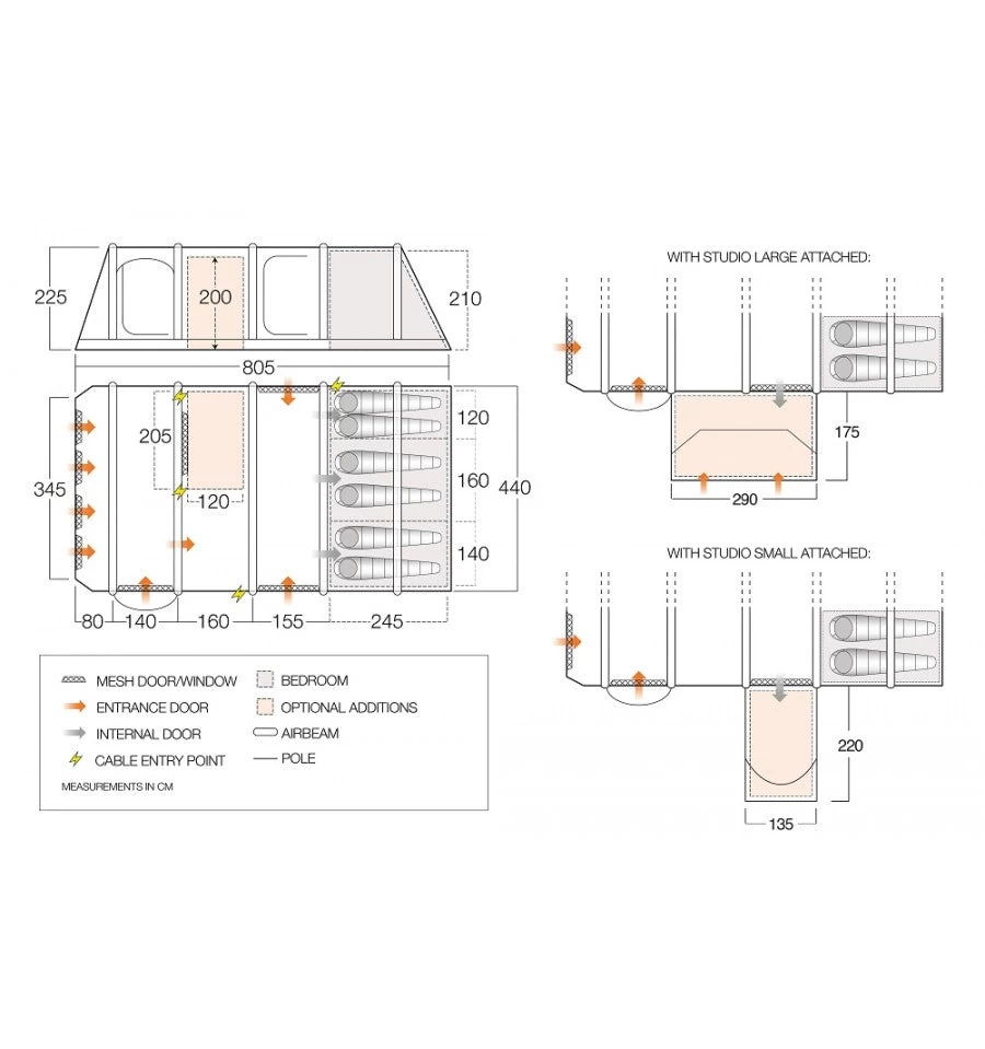- Studio Addition Compatible – The side panels of the tent have a built in zip to attach optional side studio to expand your tent’s living space or add an extra sleeping area