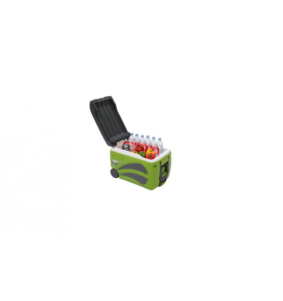 The Vango Pinnacle Wheelie 45L cool box is ideal for picnics, parties or camping trips. Able to hold 66 cans, you are sure to fit everything in. Its insulated body with polyurethane foam helps keep food and beverages cold for up to 100 hours. It features 2 small handles for carrying and a longer one with wheels on the opposite side for easy transportation.